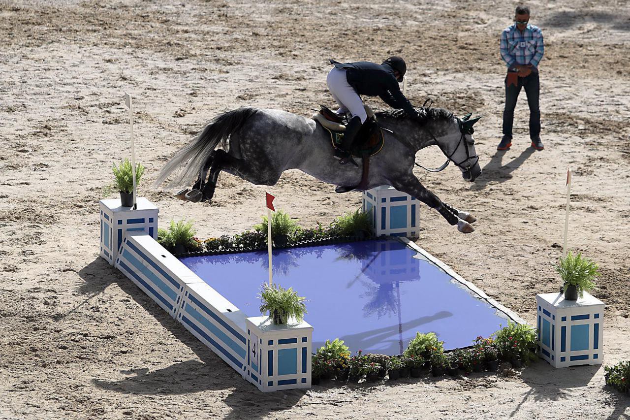 در مسابقهی پرش با اسب سوارکاران میکوشند بدون خطا و در کمترین زمان ممکن مسیر ۵۰۰ متری مسابقه را طی کنند. در طول مسیر ، ۱۵ مانع قرار داده می شود. که اسب باید به ترتیب شماره از روی همهی آن ها بپرد و مسیر مسابقه را در ۸۶ ثانیه طی کند.در غیر این صورت،به ازی هر ثانیه ، یک خطای زمانی به سوارکار و اسب تعلق می گیرد. اگر پای اسب به مانع برخورد کند و مانع بیفتد، ۴ خطا به حساب ورزشکار منظور می شود. در صورتی که اسب از پریدن خودداری کند ، 4 خطا به حساب اسب منظور می شود و فرصت دیگری برای پرش از آن مانع به او داده می شود. اما اگر باز هم از پرش امتناع کند، از مسابقه اخراج خواهد شد. معمولا مسابقات پرش در دو راند و مطابق دو جدول جداگانه برگزار می شود.در مسابقهی پرش با اسب رقابت های جهانی و المپیک،اسب ها دست کم ۸ ساله و در سایر مسابقات بین المللی ۶ ساله اند.