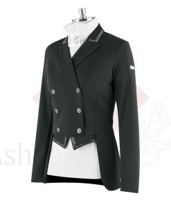 بالاتنه: بیشتر سوارکاران درساژ، کت ساده درساژ معمولاً به رنگ سیاه یا سرمه ای با سگک های فلزی می پوشند. علاوه بر این، یک کراوات سفید نیز استفاده می شود.